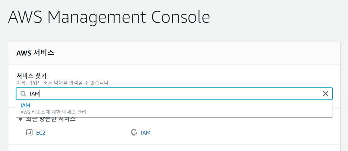 서비스 찾기에서 IAM을 검색하고, 위와 같이 나오면 클릭해서 들어가자