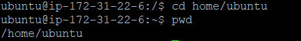 현재 /home/ubuntu 디렉토리에 있는 걸 알수있다.